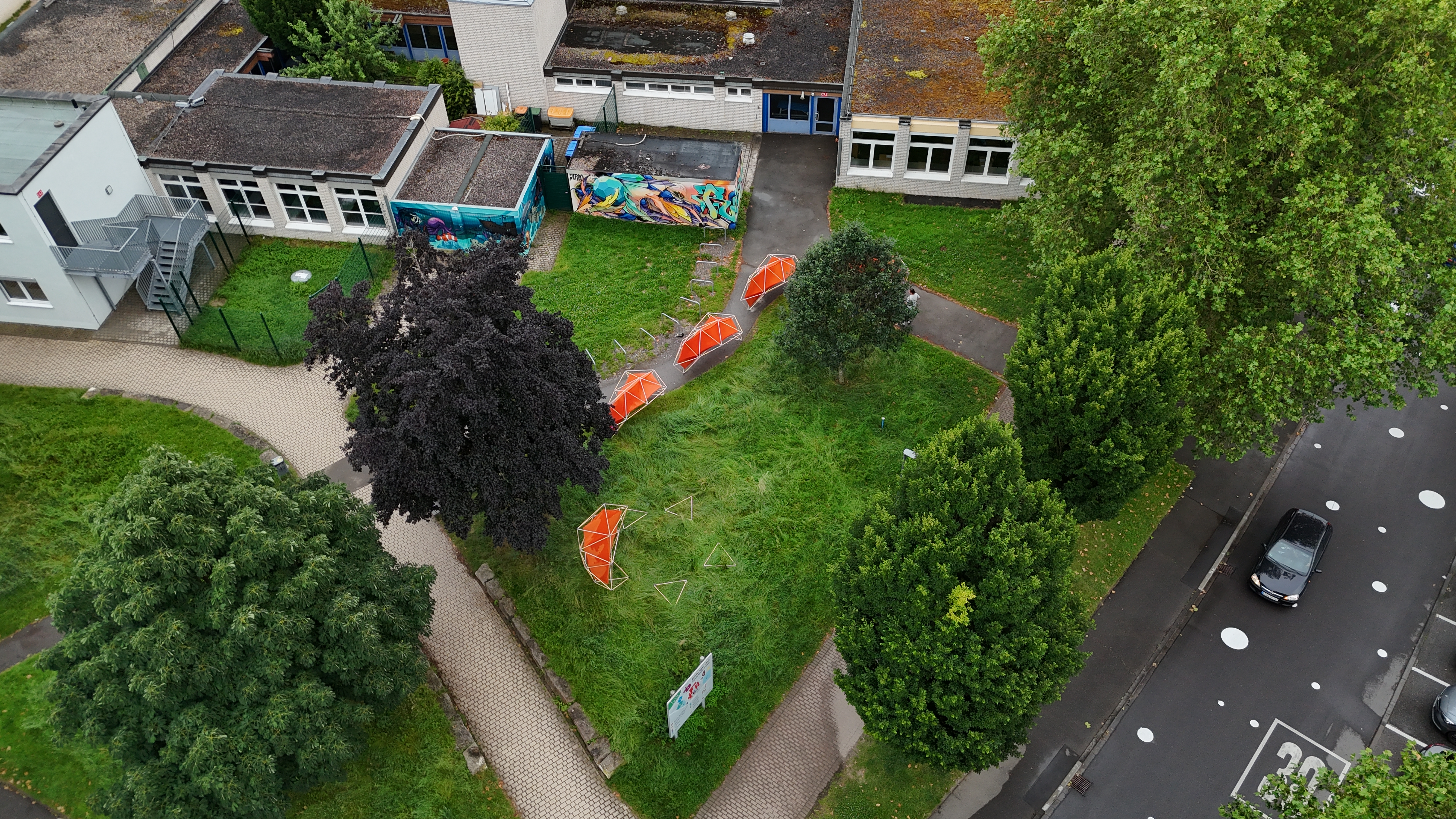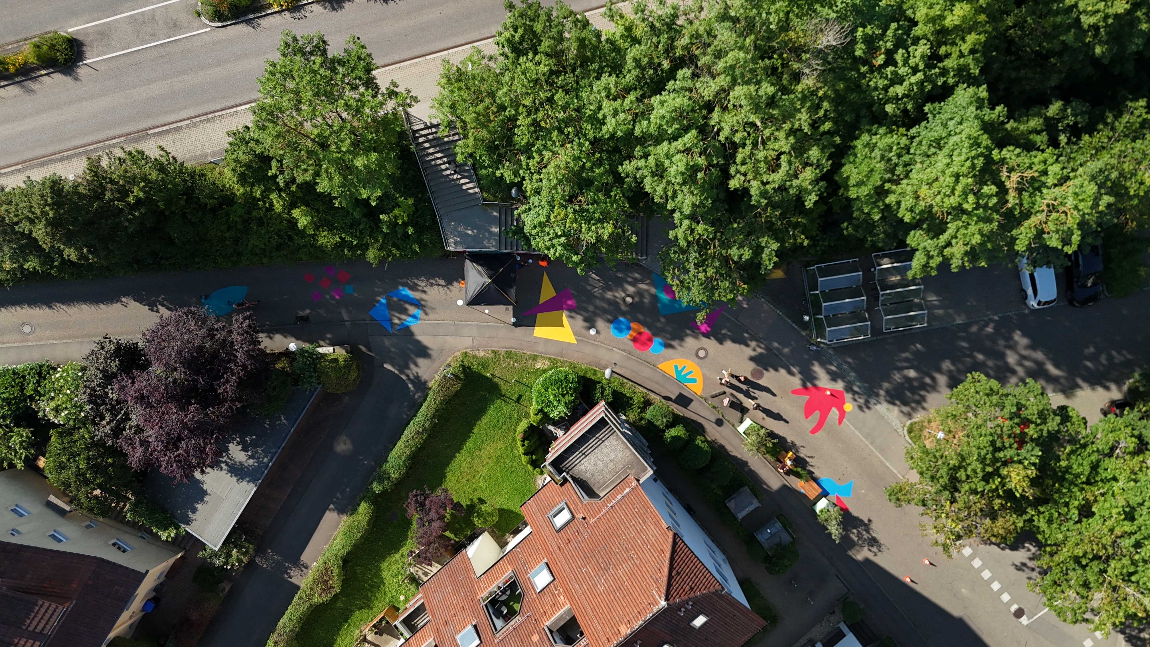 In diesen letzten Stunden ist die Arbeit in vollem Gange: Molly gestaltet die letzten bunten Formen und camposaz und die Biberacher Studenten stellen die urbanen Elemente fertig.